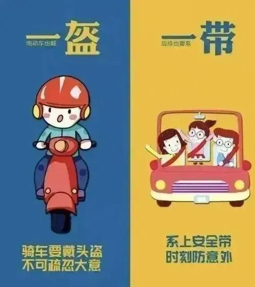 3.非机动车出行时,骑车人和乘车人都要带好头盔,不可疏忽大意。