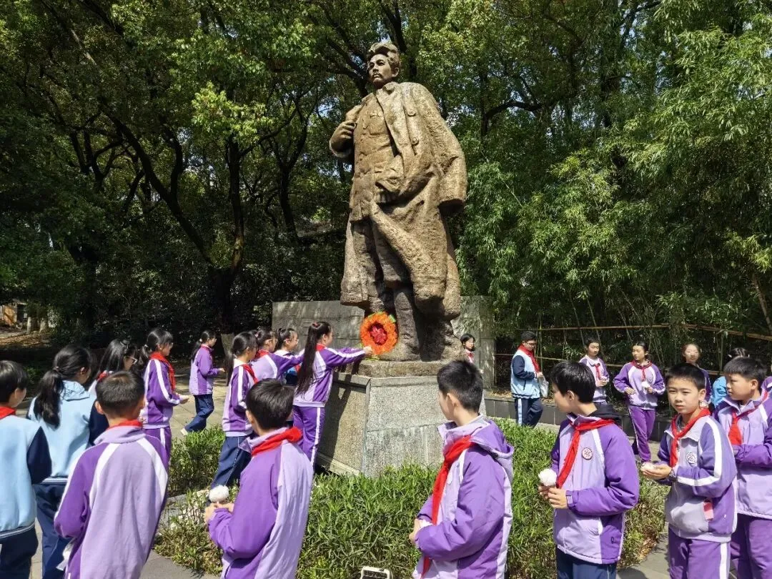学生们列队方志敏广场,在烈士塑像前献上花圈和小白花,重温入队誓词。《可爱的中国》朗诵声与铿锵誓言交织,让师生深刻感悟信仰力量,坚定建设“可爱中国”的决心。