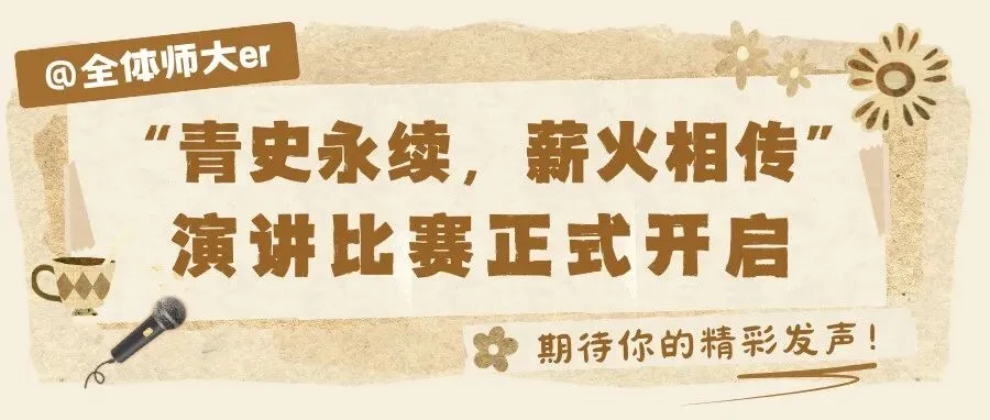 @全体师大er,“青史永续,薪火相传”演讲比赛正式开启,期待你的精彩发声!