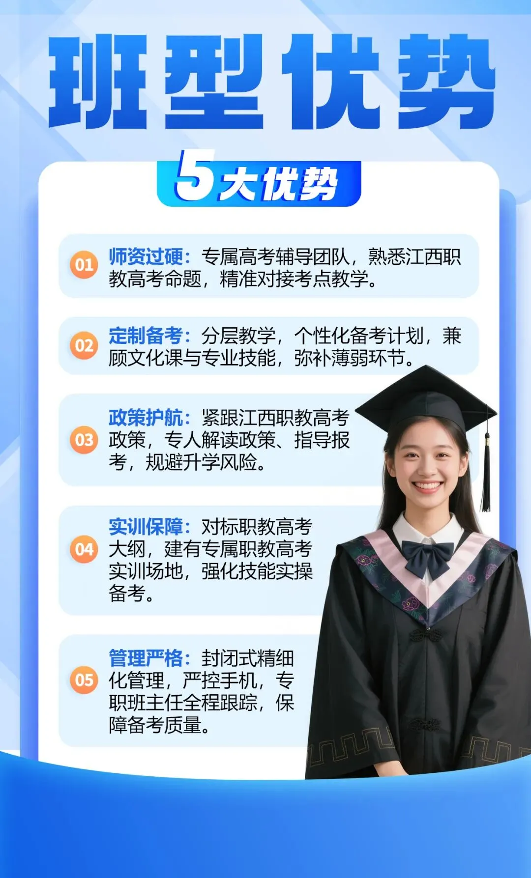 学校自创办以来一直专注铁路人才培养,是目前江西颇具特色的一所以轨道交通类为主的中等专业学校。学校已开设铁道运输服务、电气化铁道供电、电力机车运用与检修、工业机器人技术应用、航空服务、机电技术应用、新能源装备运行与维护、数字媒体技术应用等主要专业,涵盖装备制造、交通运输、电子信息等三大类专业。教育始于初心,成果源于用心,学校先后获得“南昌市优秀等级学校”“1+X证书联盟牵头学校”“江西省教育系统先进集体”“南昌市教育系统立德树人综合考核一等奖"等诸多荣誉。学校有五个专业被评为南昌市职业教育“精品特色专业”,三个工作室被评为“技能名师工作室”,学校多年来的办学成果备受社会赞誉,被誉为学生满意、家长放心的铁路轨道交通人才培养的摇篮!