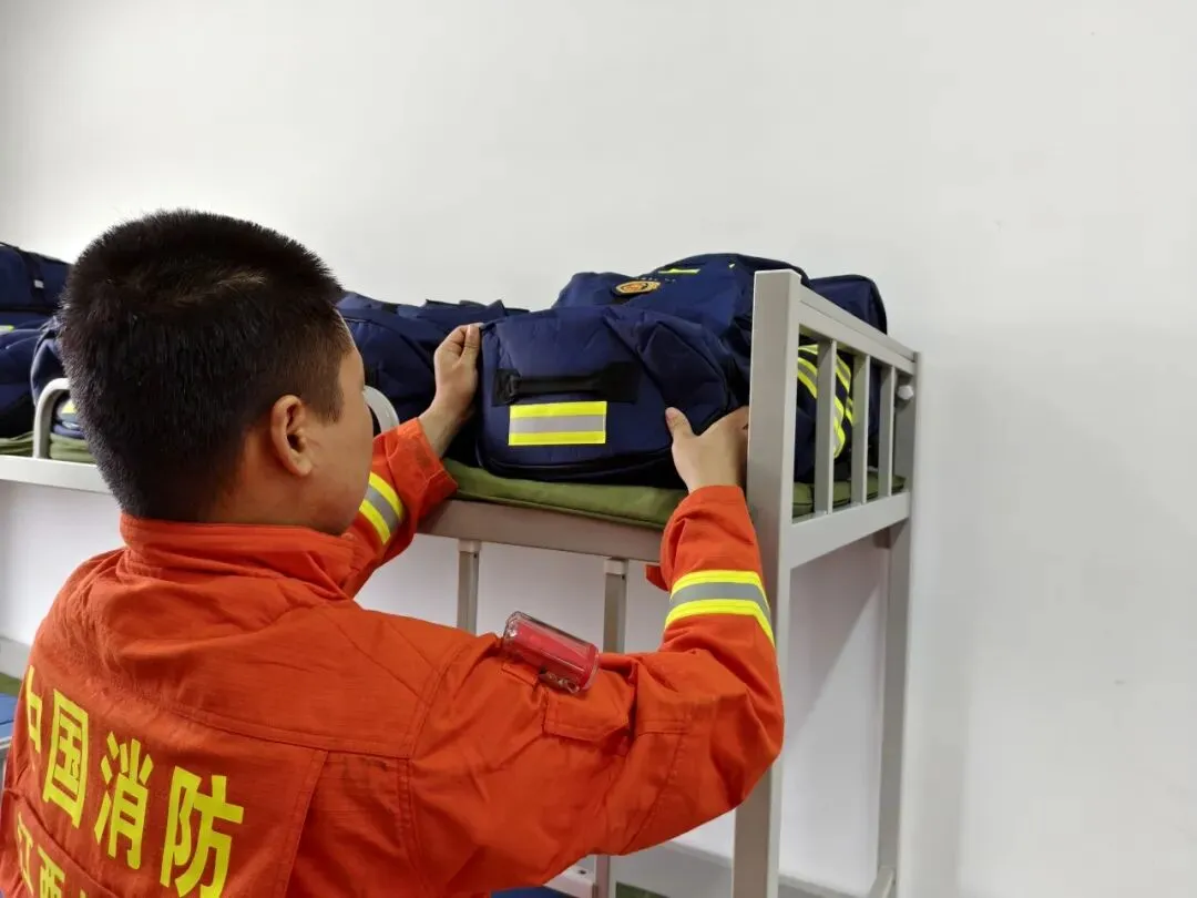 晨光初现,随着清脆的哨声响起,值班员集合全体人员进行人员清点。随后安排人员迅速整理内务卫生,并要求驾驶员和装备管理员检查车辆性能和装备数量,将执勤车辆与携带装备规范摆放,既保证出动快捷,又消除物品杂乱带来的安全隐患。