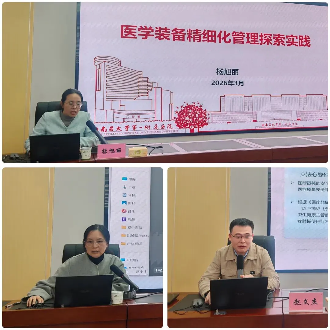 本次培训紧扣最新监管政策与临床管理规范,聚焦医疗器械采购、验收、使用、维护等关键环节,突出实用性和针对性。培训邀请南昌大学第一附属医院装备处处长杨旭丽作《医学装备精细化管理探索实践》专题授课,市市场监管局医疗器械监管科专家熊炜对《医疗器械使用质量监督管理办法》进行权威解读,市疾控中心(市卫健执法局)副科长赵文杰围绕《医疗器械监督要点》开展系统讲解。课程内容紧贴工作实际,进一步帮助参训人员明晰政策标准、掌握管控要点、提升履职能力,为筑牢医疗器械使用安全防线夯实了基础。