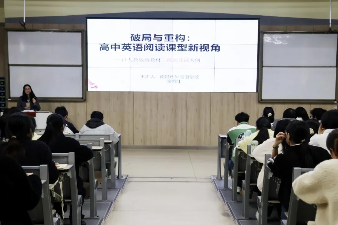 3月27日,南昌市外国语学校高中英语教师涂勇红在我院开展专题讲座,题为“破局与重构:高中英语阅读课型新视角——以人教版新教材三篇阅读课为例”。我院副院长刘明,专任教师张恒、熊玥出席此次讲座。讲座持续2小时。