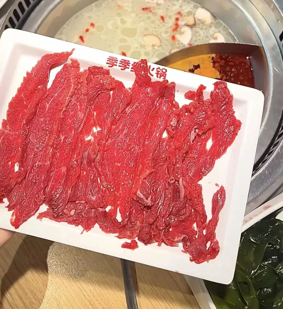 ●现切吊龙/雪花肥牛:原切不拼接,涮8秒就嫩,性价比拉满