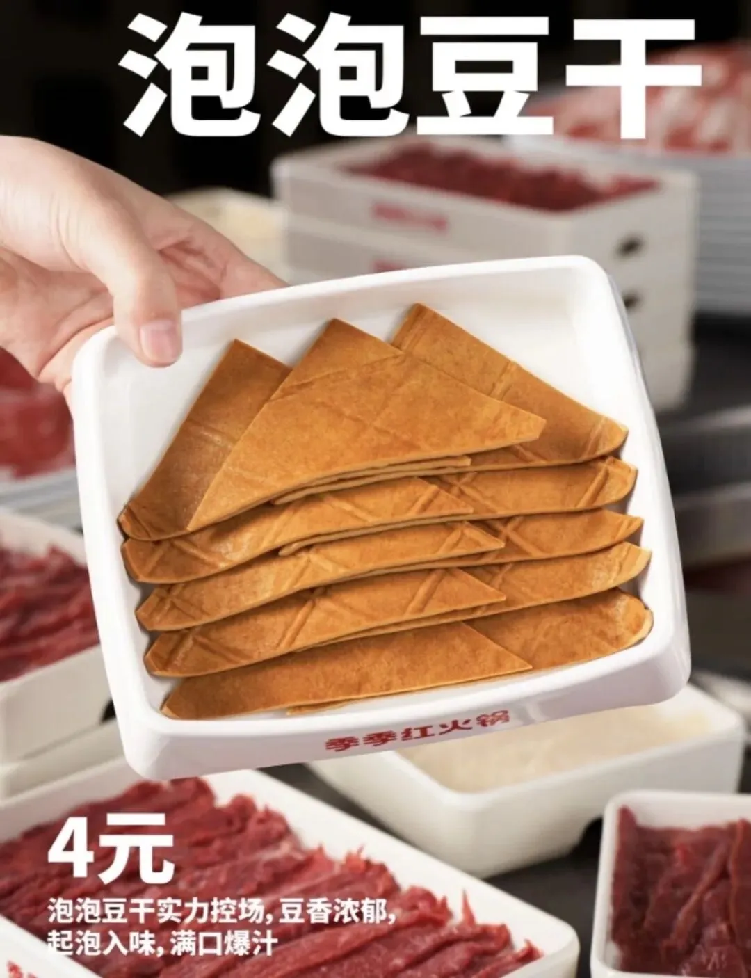 ●泡泡豆干/冻豆腐:吸满汤汁,一口爆汁,江西火锅灵魂配菜