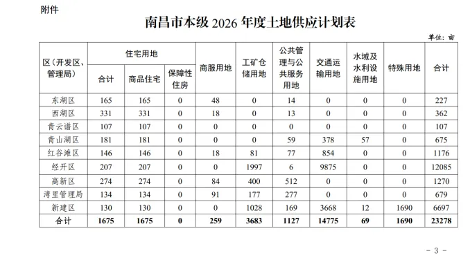 最近,南昌市自然资源规划局首次公布了《南昌市本级2026年度土地供应计划表》