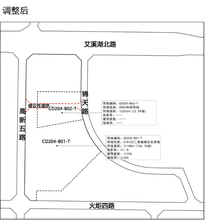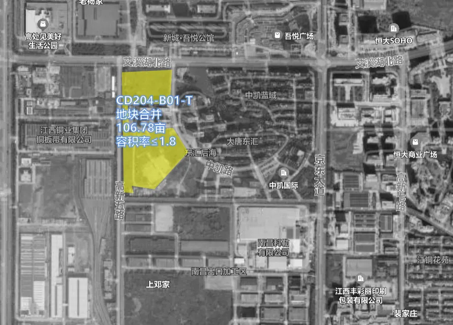 此次调整主要是本次主要将两宗挨在一起的住宅地块合并,调整为一块住宅用地,应该是为了一起出让。地块位置还是蛮好的,北面就是新城吾悦广场,距离地铁三号线北沥站也在1公里以内,而且这块地也处在南昌中学艾溪湖校区的学区范围内,这意味着高新艾三学区内又有住宅供应了!地块用地编码为CD204-B01-T;用地性质为二类城镇住宅用地用地;面积为71188平方米(106.78亩);容积率≤1.8,建筑密度≤30%,绿地率≥30%。
