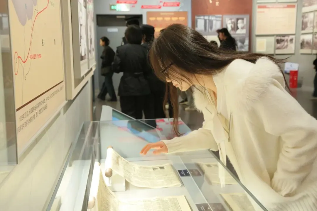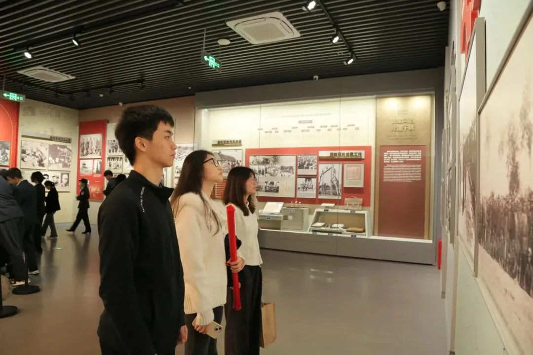 献花结束后,同学们在讲解员的带领下,参观了南昌新四军军部旧址陈列馆。一张张珍贵的历史照片、一件件斑驳的革命文物、一封封感人的红色家书,将那段烽火岁月重新呈现在大家眼前。