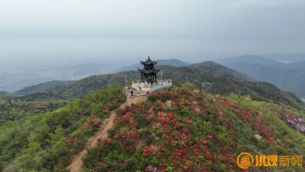 新建区乐化镇中盛山庄内,百亩5万余株杜鹃竞相绽放、争奇斗艳,30余个品种肆意盛放,玫红、粉白、淡紫的花团层层叠叠,与火红花簇交相辉映、缀满枝头,成为市民休闲赏景、踏青出游的热门打卡点。据了解,该景区杜鹃已进入盛花期,花期持续至4月15日,当前杜鹃开得饱满艳丽、花型规整,观赏效果极佳。记者在景区内看到,成片人工培育的杜鹃沿山路错落铺展,与山间翠绿绿植相映,氛围感拉满;青石步道蜿蜒其间,平缓好走,方便游客穿梭其间,近距离观赏杜鹃的细腻姿态,沉浸式感受春日生机。