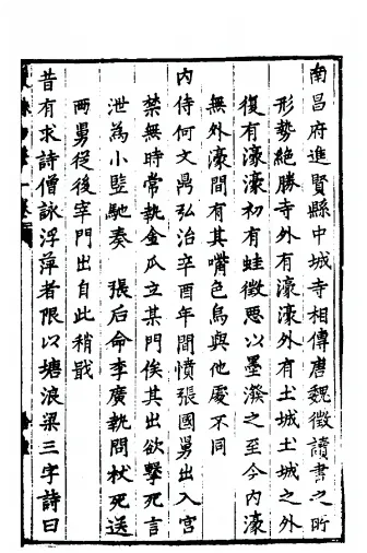 南昌崇福寺,便是这样一座以简朴之姿守护一方人心的古刹。有关它的历史,最早可追溯至唐代。据康熙二年(1663)《南昌郡乘》卷九记载:“崇福寺,在中城山,一名中城寺,唐魏徵士居此。寺外有濠,濠多产蛙,徵士以墨泼之,至今蛙皆□”。类似的记载亦见于明人徐充的《暖姝由笔》:“南昌府进贤县中城山寺,相传唐魏徵(士)读书之所,形势绝胜,寺外有壕,濠外有土城,土城之外复有濠。濠初有蛙,徵恶,以墨泼之。至今内濠无,外濠间有,其嘴色乌,与他处不同”。