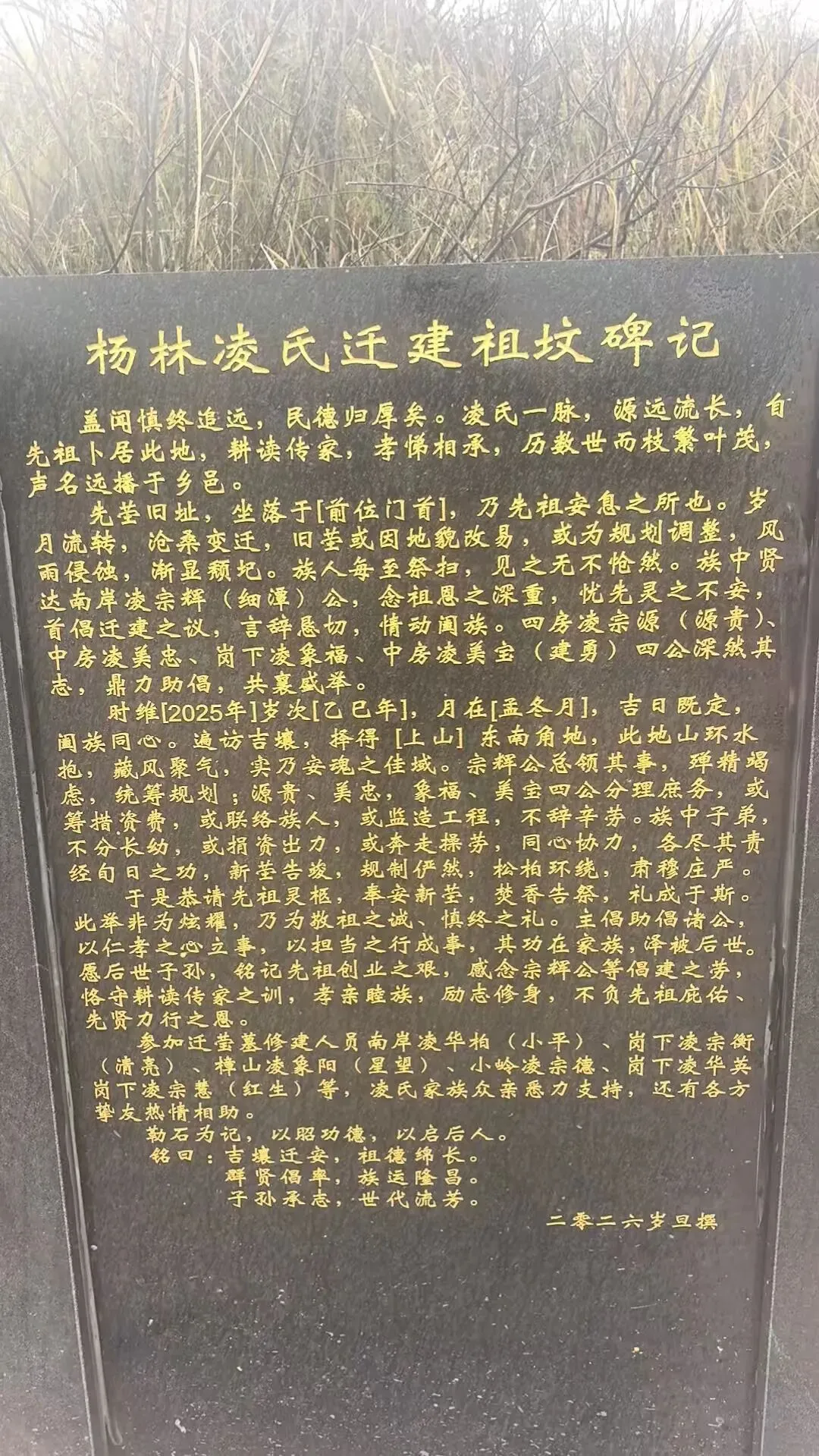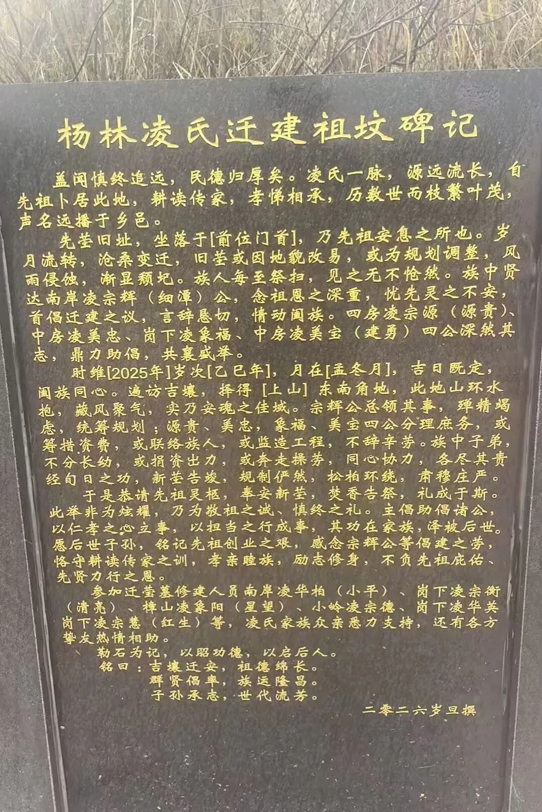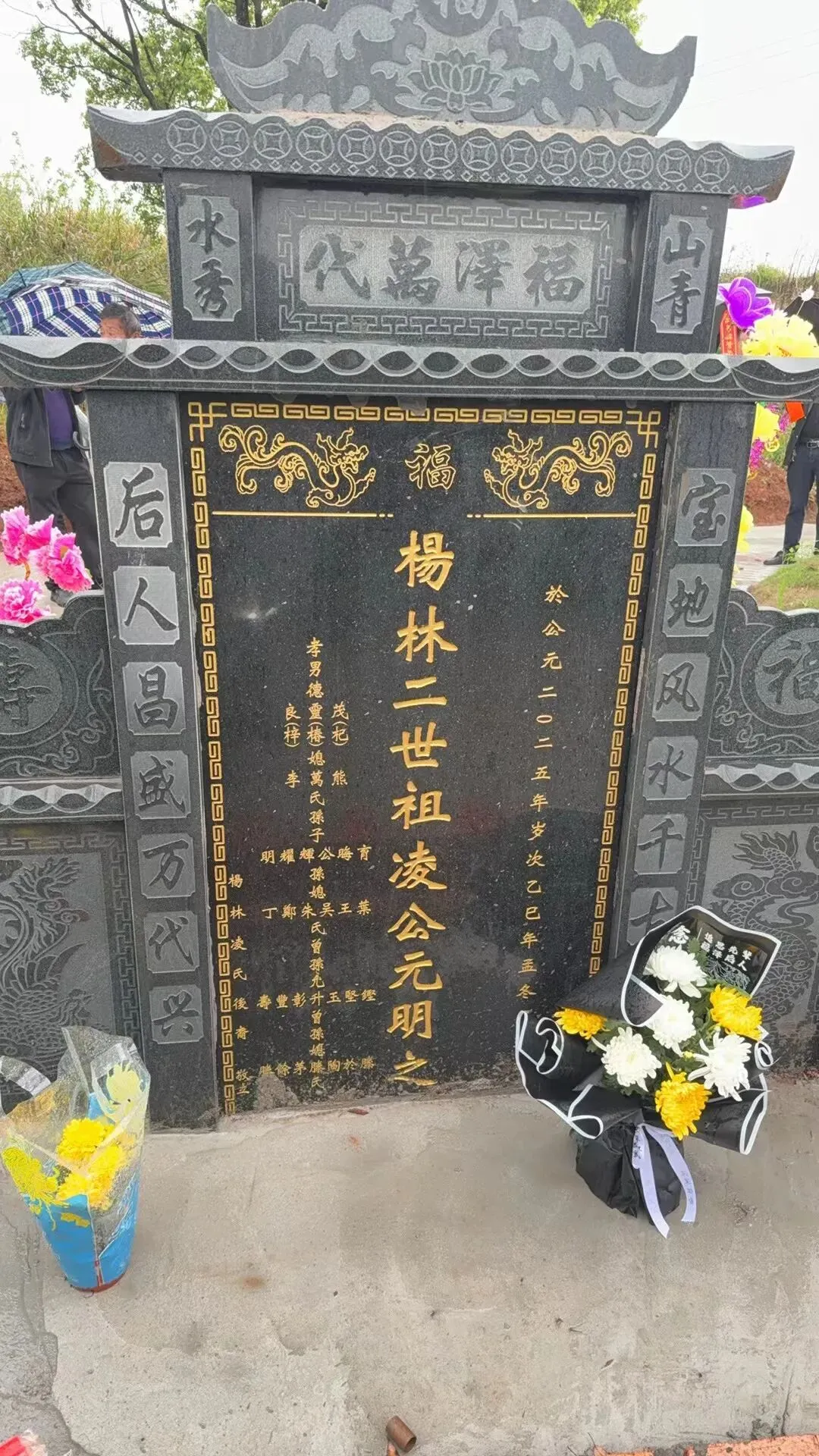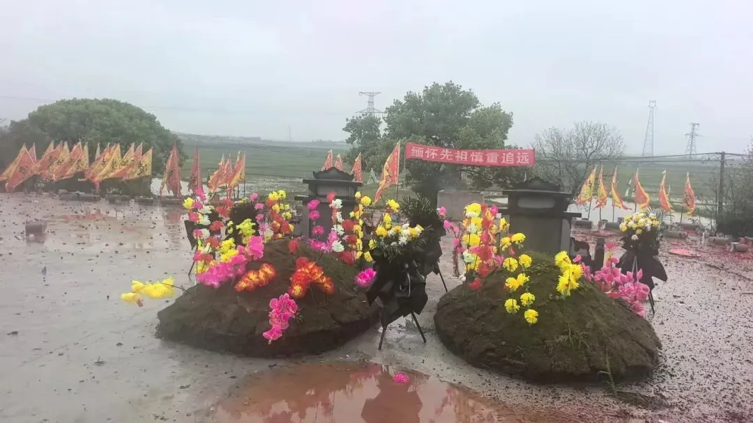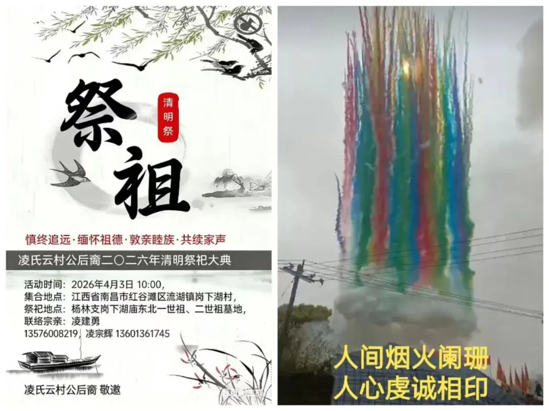 祭文全文如下:维公元二零二六年,岁次丙午,清明之际。凌氏木本堂宗亲,偕各地宗亲代表,献香花雅乐之仪,致祭杨林一世祖汉远公、二世祖元明公之灵前。曰:缅我祖公,诞于新城。英邈腾飞,经学俊才。十八折桂,初仕洪都。杨林创业,筀竹建基。木本水源,播衍四海。千秋俎豆,享祀一方。今我族裔,各地来同。值此清明,虔修祀典。追远报本,心香一瓣。肃立墓前,追思遐想。祖之功德,山高水长。公之忠孝,乃族之光。公之仁信,家风所倡。今呈薄奠,非仅牲醪。继志述事,是承是祷。愿我族人,思源不忘。砥砺德行,兴业齐家。敦亲睦邻,报效国邦。承先启后,世代永昌。灵其有知,伏维歆格!尚飨!敬献花篮:宗亲同心,共襄盛举祭文宣读完毕,凌源贵、凌象福、凌宗荣、凌涛、凌友爱、凌绍等宗亲代表依次向始祖、二世祖敬献花篮与插花,表达对先祖的无限追思。花篮缎带上“祖德流芳”“族运隆昌”等字样,寄托着后人的敬仰与祈愿。