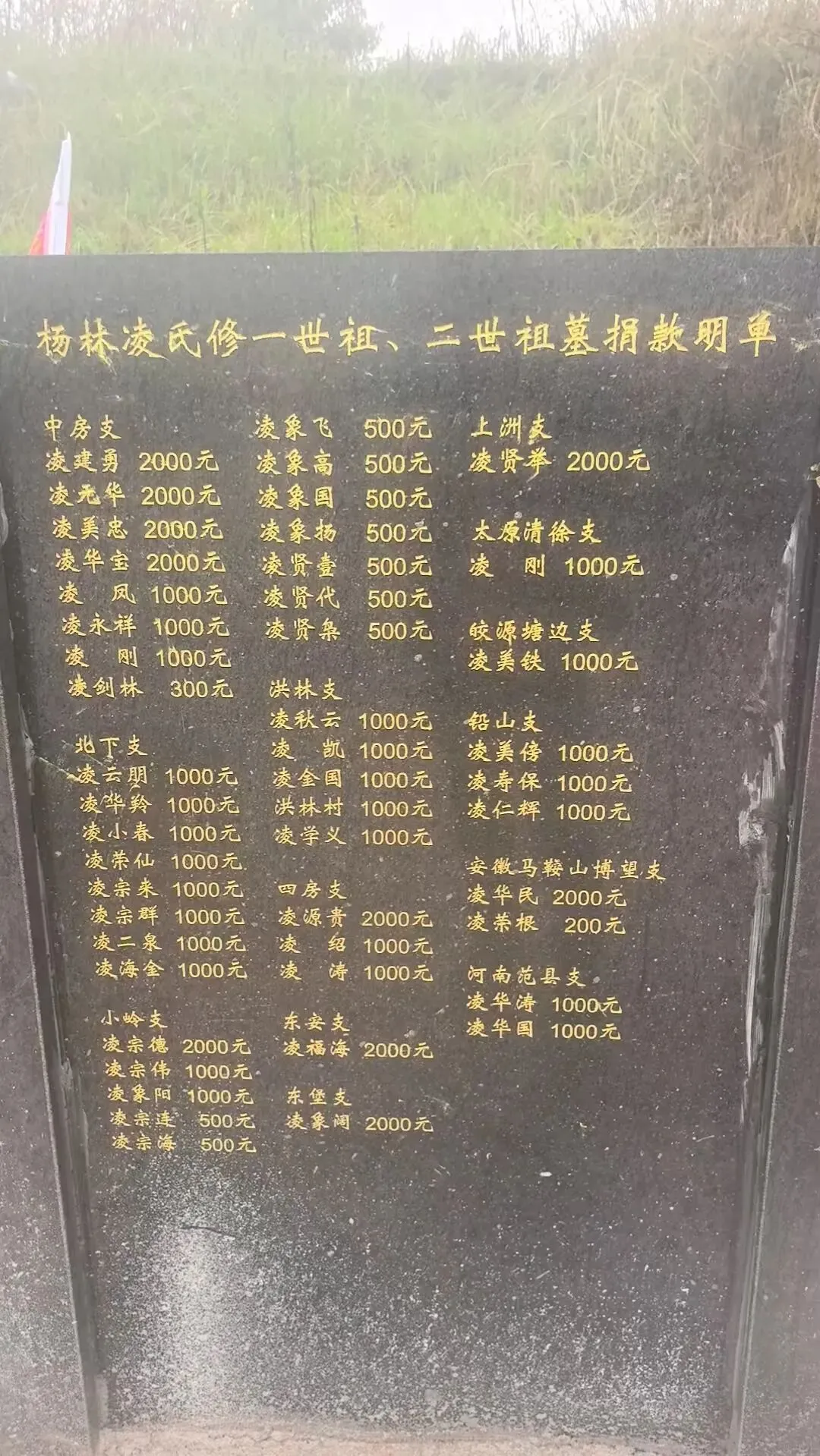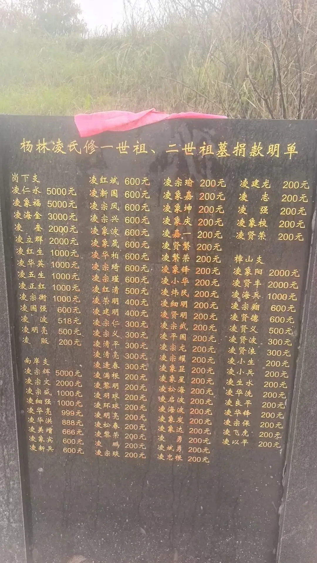 上香行礼:辈分有序,薪火相传仪式核心环节中,宗亲们依循传统礼制,按辈分先后行鞠躬礼。从“开”字辈到“待”字辈,各支系代表依次列队,在司仪口令下向祖先行三鞠躬礼,动作整齐划一,尽显家族凝聚力。随后,云南、广东、湖南等地宗亲代表及广大宗亲依次上香,香烟缭绕中,先祖精神与后人孝心交融。值得一提的是,本次祭祖活动还特别表彰了为迁建祖坟捐款的宗亲。据《杨林凌氏修一世祖、二世祖墓捐款明单》记载,凌仁水、凌象福、凌宗辉等宗亲慷慨解囊,共同促成祖坟迁建工程,使先祖灵柩得以安息于“山环水抱”的吉壤。