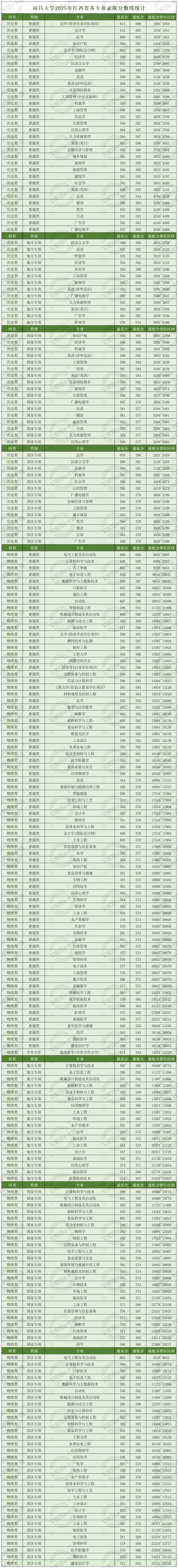 >南昌大学2025年江西省各专业录取分数线!