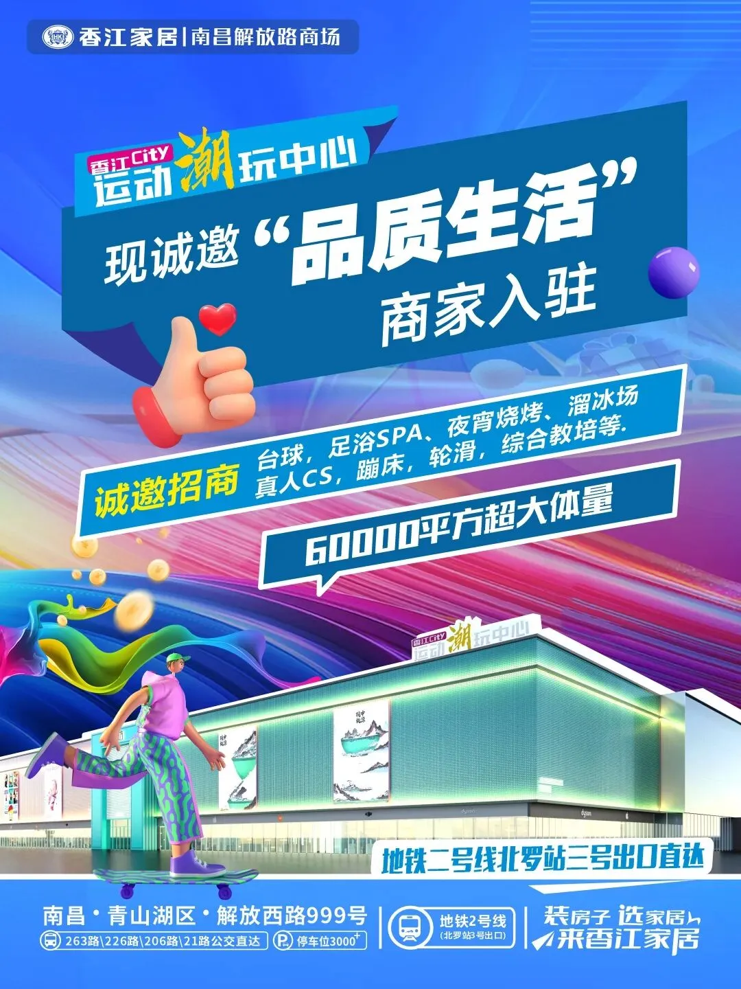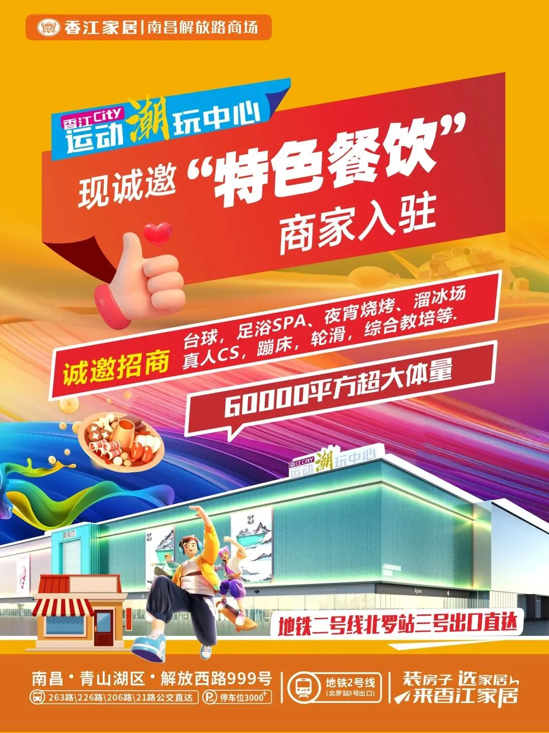 地铁上盖黄金旺铺,承接海量稳定客群。我们以开放的姿态,诚邀特色餐饮、娱乐潮玩品牌入驻,与我们一起定义南昌年轻人的潮玩生活方式。