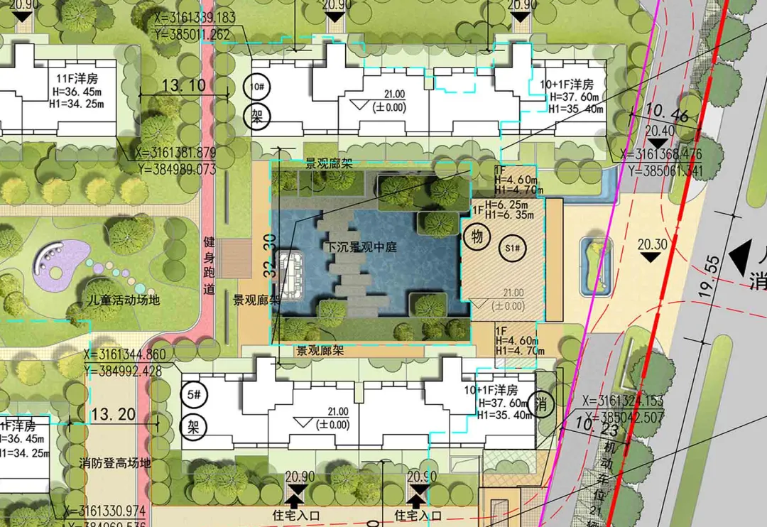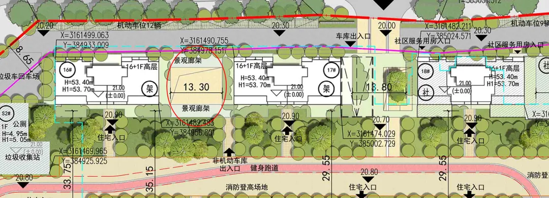 并在局部设置了景观廊架。