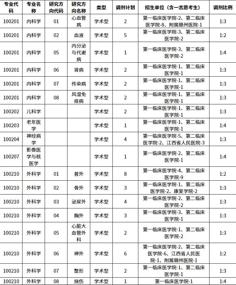 专硕总缺额统计:临床医学专硕合计缺额超 40 个,2 个核心方向复试比例低至 1:1.5,是今年南医调剂最大的福利!