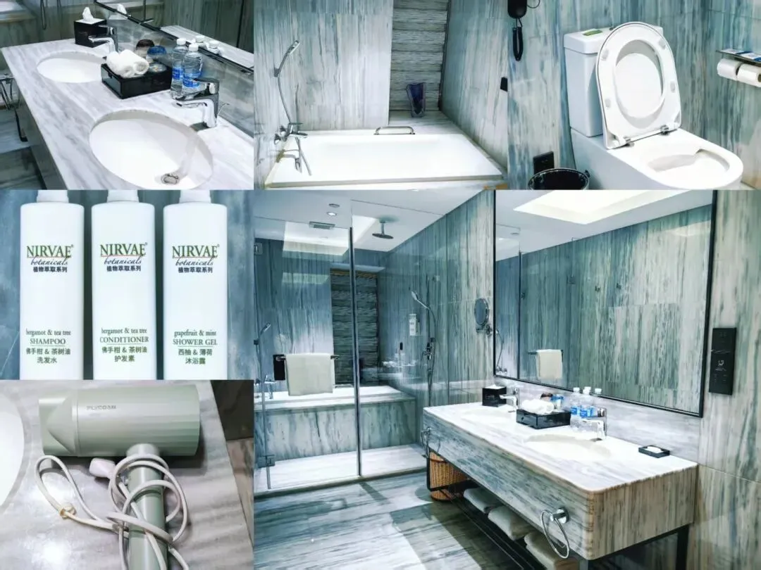 7.5/10—— 双台盆和唯宝汉斯格雅是亮点,但水压偏小、没有全身镜、空调维护中,扣分不少。