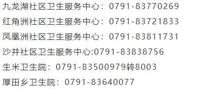 红谷滩区基层医疗卫生机构联系方式: