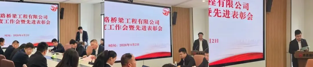 4月2日,南昌公路桥梁工程有限公司2026年度工作会暨先进表彰会在公司一楼会议室召开。会议全面复盘2025年工作成果,精准研判当前发展形势,周密部署2026年重点任务,对优秀员工、先进个人、先进集体进行表彰,并现场签订安全生产及党风廉政建设责任状,号召全体干部职工凝心聚力、实干攻坚,全力推动公司高质量发展再上新台阶。