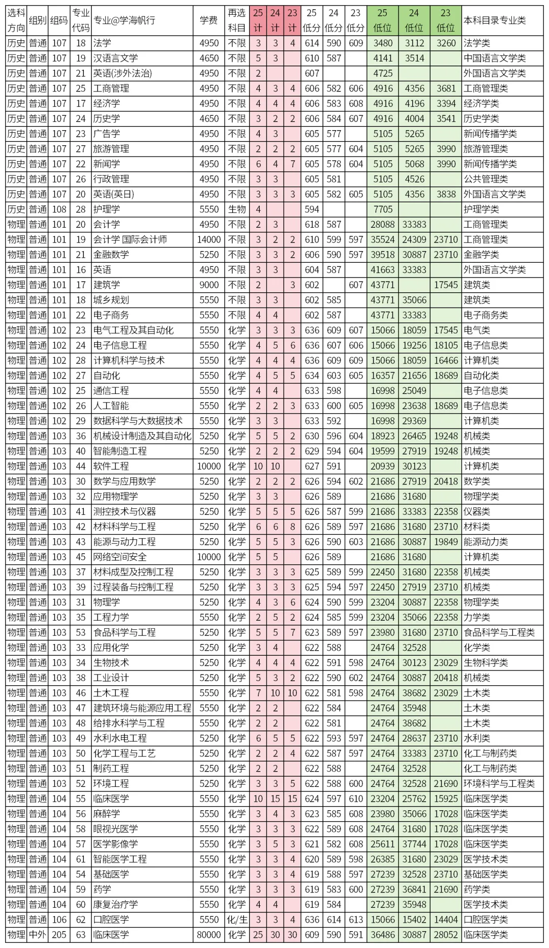 更多院校23-25年专业分数和位次对比数据请点本超链接跳转查看!
