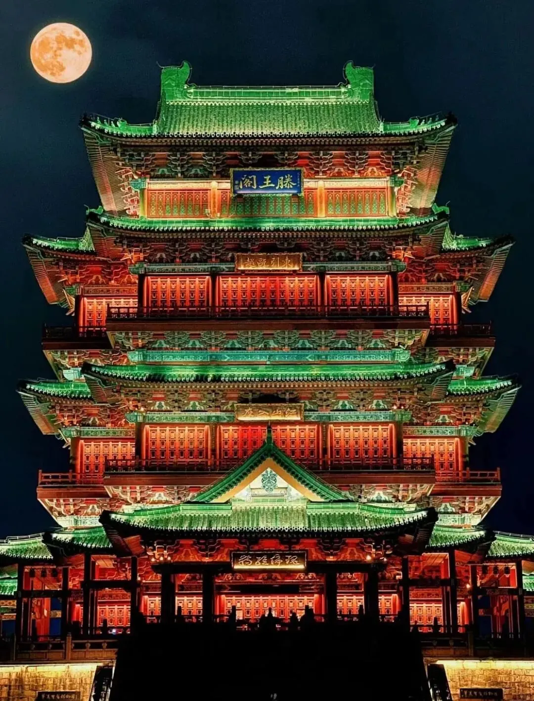 1.滕王阁:滕王阁,位于江西省南昌市东湖区沿江路,地处赣江东岸、赣江与抚河故道交汇处,为南昌市地标性建筑、豫章古文明之象征。始建于唐永徽四年(653年),为唐太宗李世民之弟滕王李元婴任江南洪州都督时所修,现存建筑为1985年重建景观;因初唐诗人王勃所作《滕王阁序》而闻名于世;与湖南岳阳岳阳楼、湖北武汉黄鹤楼并称为“江南三大名楼”,是中国古代四大名楼之一、“中国十大历史文化名楼”之一,世称“西江第一楼”。