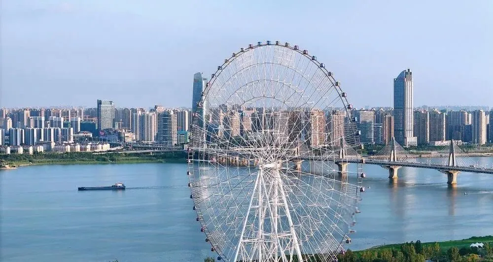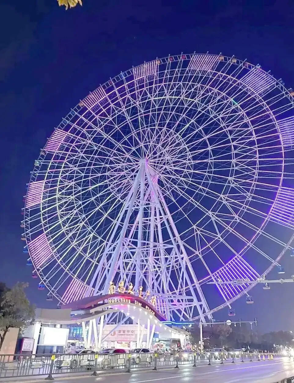 8.摩天轮:南昌之星摩天轮是南昌市乃至中国江西省的标志性建筑与旅游景点,位于红谷滩区赣江市民公园,高160米,为世界第三高、国内最高的摩天轮。其轮面由近万根LED灯构成,夜间可显示直径153米的巨型彩色时钟及多种图案。摩天轮设有60个全景观光太空舱,每个舱可容纳6-8人,旋转一周约需30分钟,可同时承载约480人。
