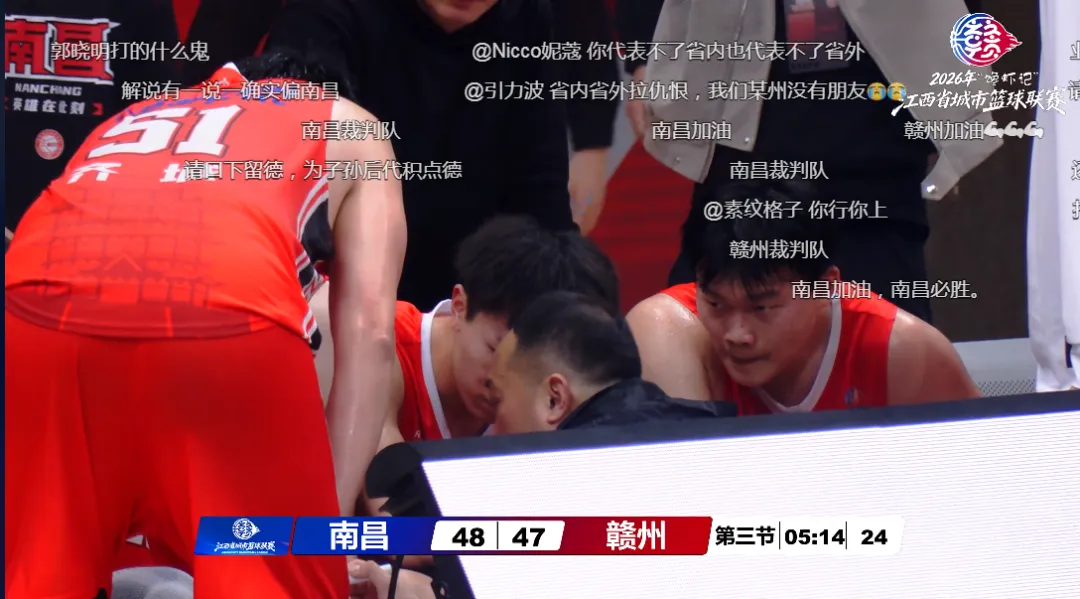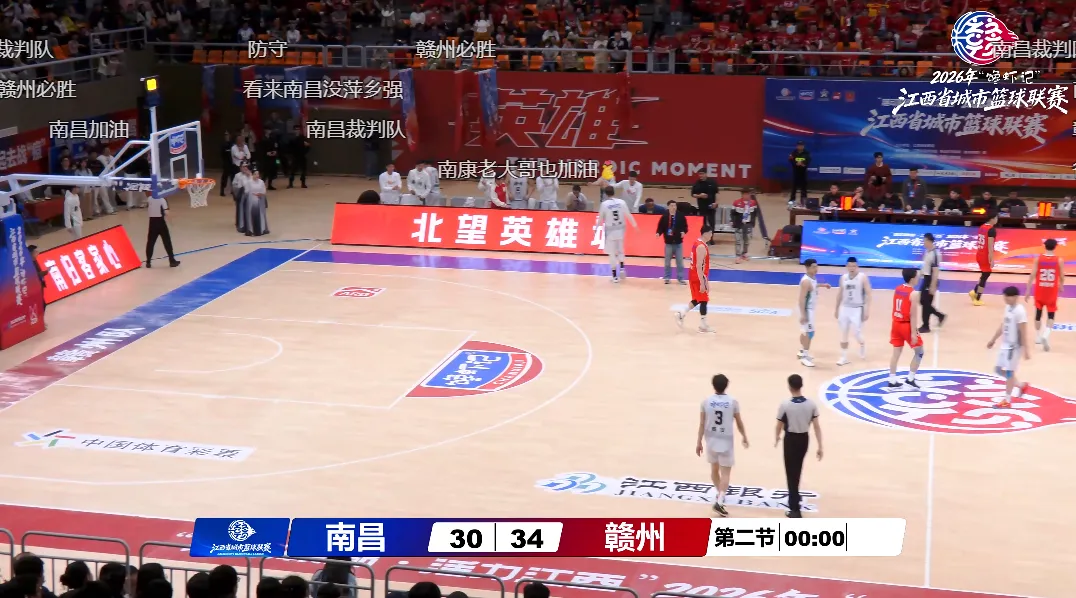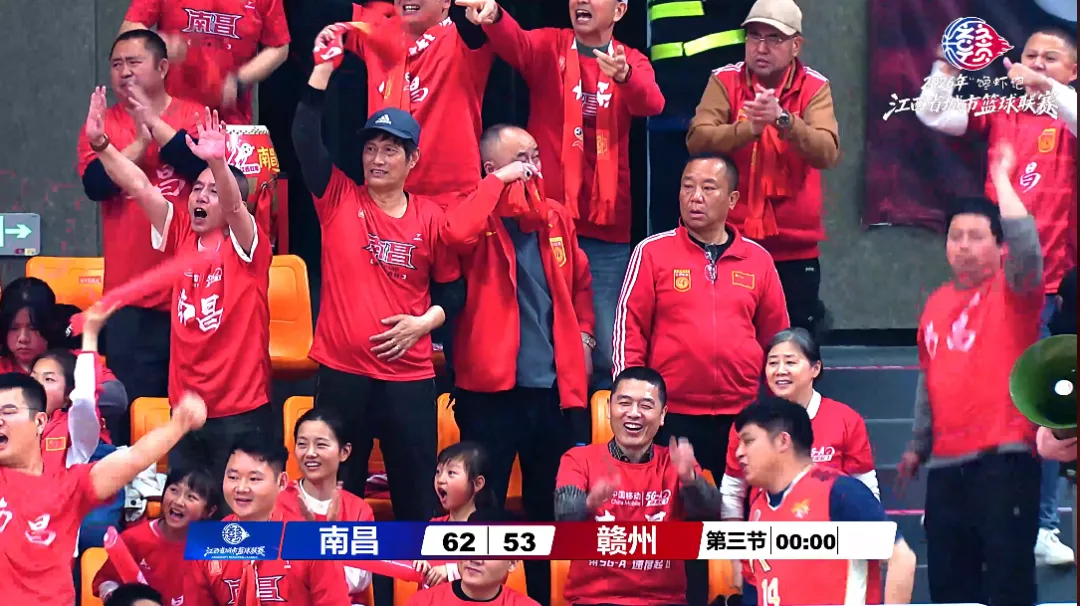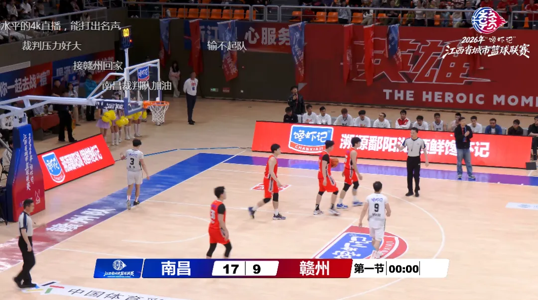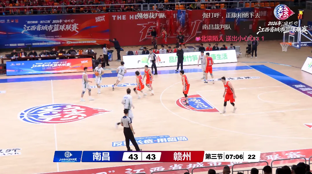 带着11分的优势,赣州市队还有机会吗?比赛开始,南昌市队脐橙命中三分,赣州市队岌岌可危,双方各有命中,结果南昌市队利用赣州市队篮下防守空位上篮打停。