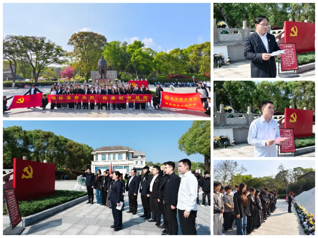 在方志敏烈士陵园,学生代表身着正装,深情朗诵方志敏烈士经典著作《可爱的中国》,铿锵有力的字句重现了革命先烈对祖国的无限热爱与美好憧憬,让在场师生沉浸式感受英烈的家国情怀与革命初心。部分学院还组织新党员面向党旗庄严宣誓,老党员一同重温入党誓词,铮铮誓言回荡在陵园上空,既是对革命先烈的告慰,更是对全体党员坚守初心、勇担使命的坚定承诺。