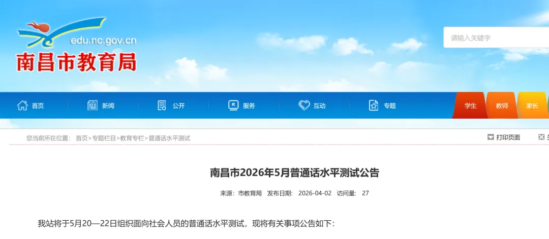 2.测试地点:南昌市普通话培训测试站(东湖区南京西路166号南昌市育新学校南京西路校区综合楼三楼)