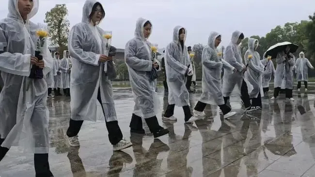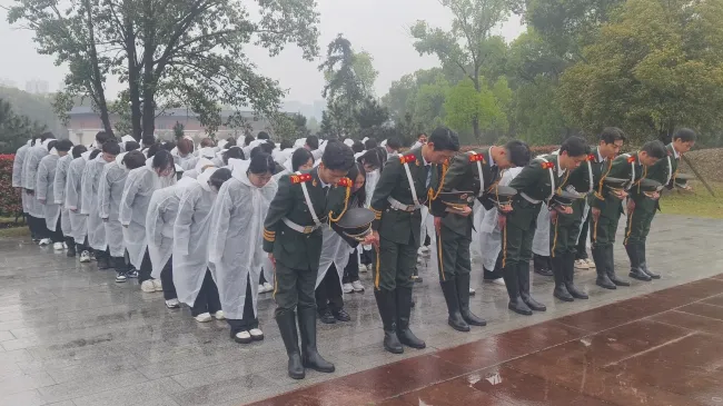 中午时分,全体师生身着素装,整齐列队步入庄严肃穆的烈士陵园。国旗护卫队迈着铿锵有力的步伐,将花圈敬献至烈士纪念碑前。洁白的花圈寄托着对英烈的无限哀思,“革命烈士永垂不朽”的挽联在微风中轻轻飘动。全体人员肃立默哀,现场庄严肃静,师生们低首追思,深切缅怀为民族独立、人民解放和国家富强英勇献身的革命先烈。