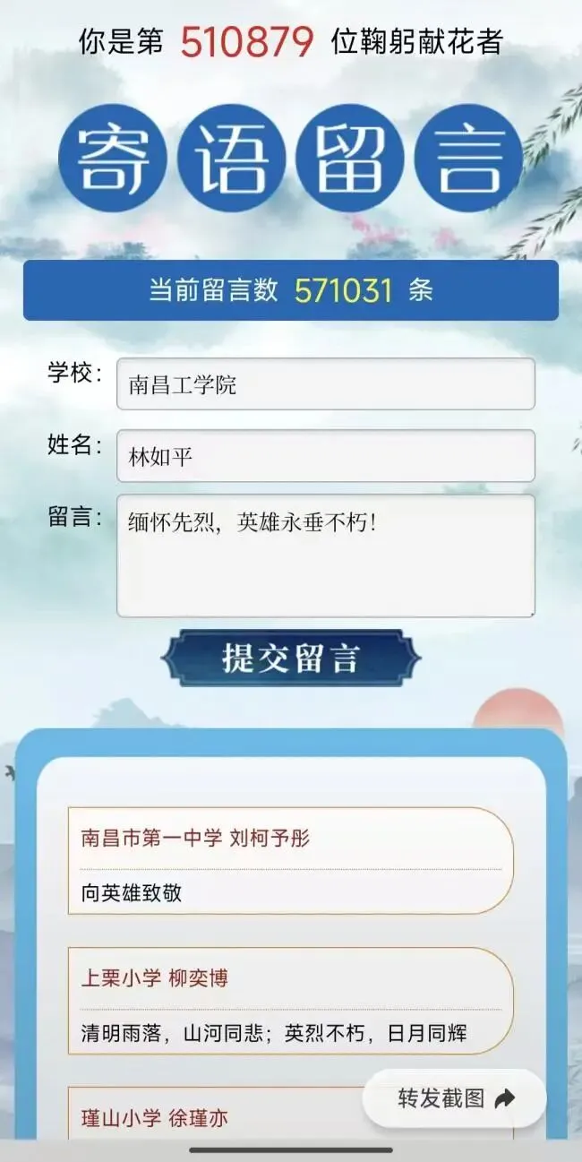 学校同步组织学生参与2026年“网上祭英烈”线上活动,通过线上献花、点烛、留言、撰写祭文等形式,在云端深情表达对英烈的崇敬与追思,达成线上线下相互联动、校内校外共同祭奠的良好局面。
