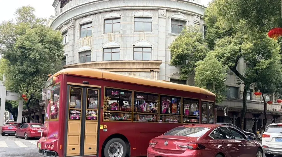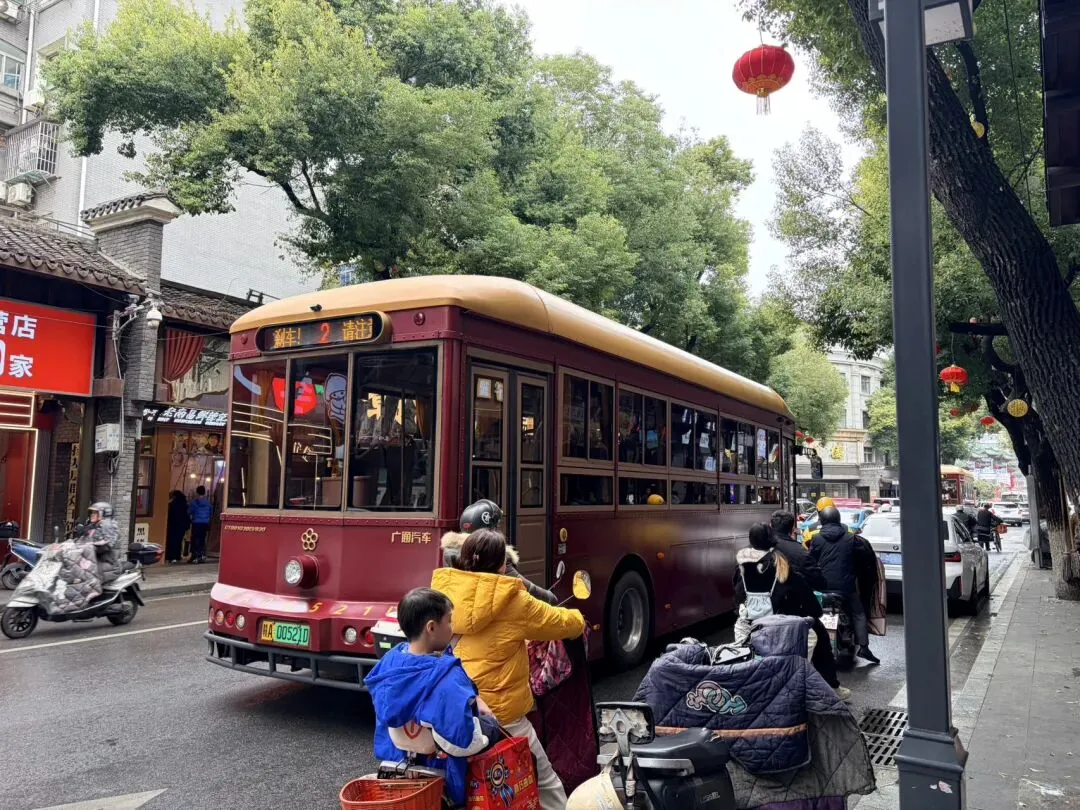 往滕王阁去,可坐公交2号线去往步行街。2号公交车布置的很复古的样子,有的车辆还用了娃娃做装饰,复古又可爱,拍照也很不错呢。