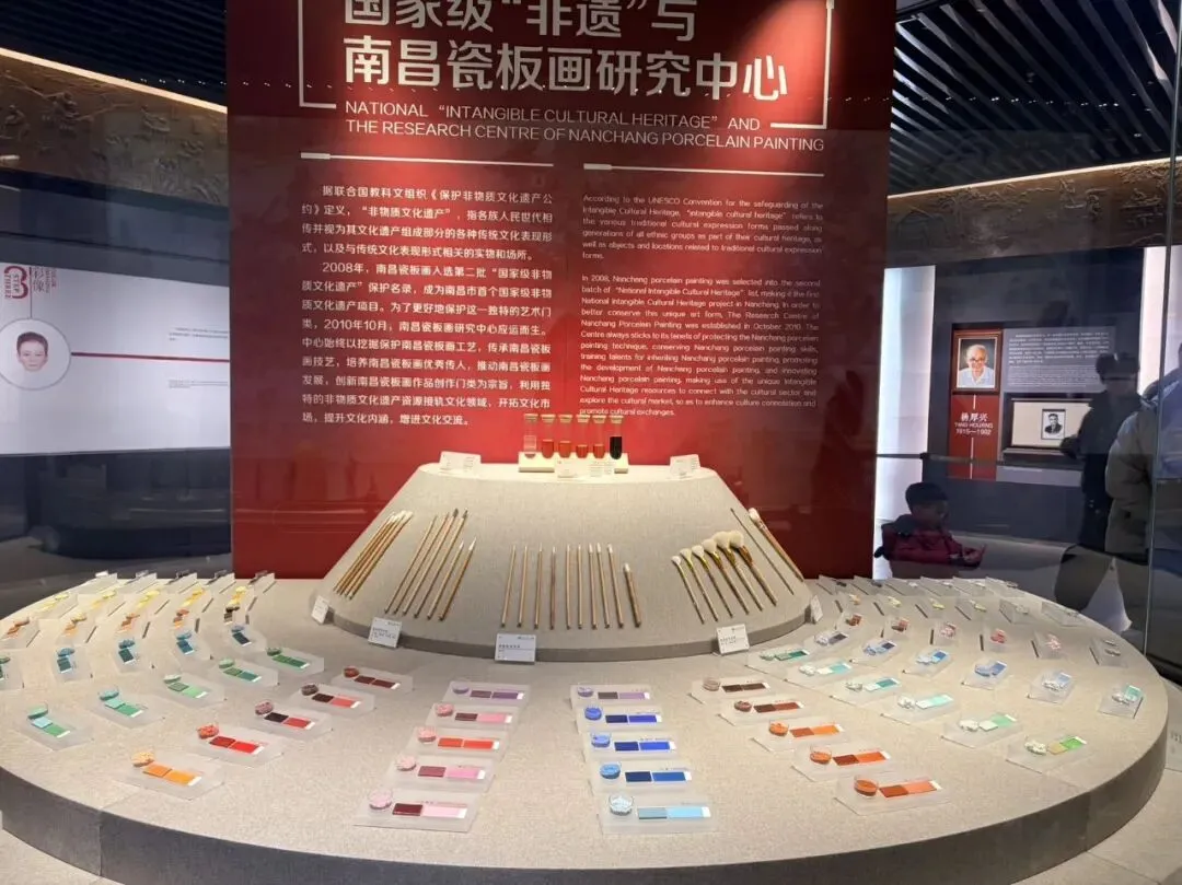 滕王阁不远处,还有南昌市博物馆,我们去的时候博物馆里展示了南昌瓷板画,各种瓷器的版画及颜料等。