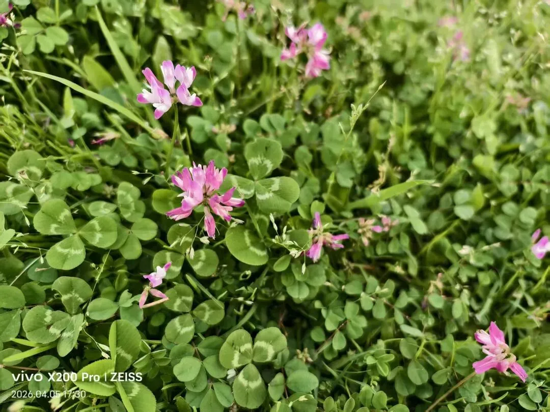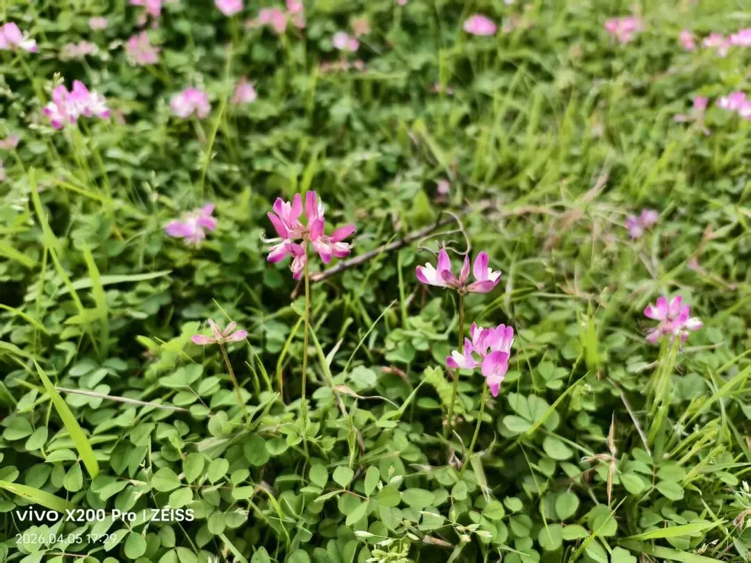 走在江边的草地上,低头一看,紫云英(Astragalus sinicusL.)正开的浪漫,花成片成片的开,占满了草地。