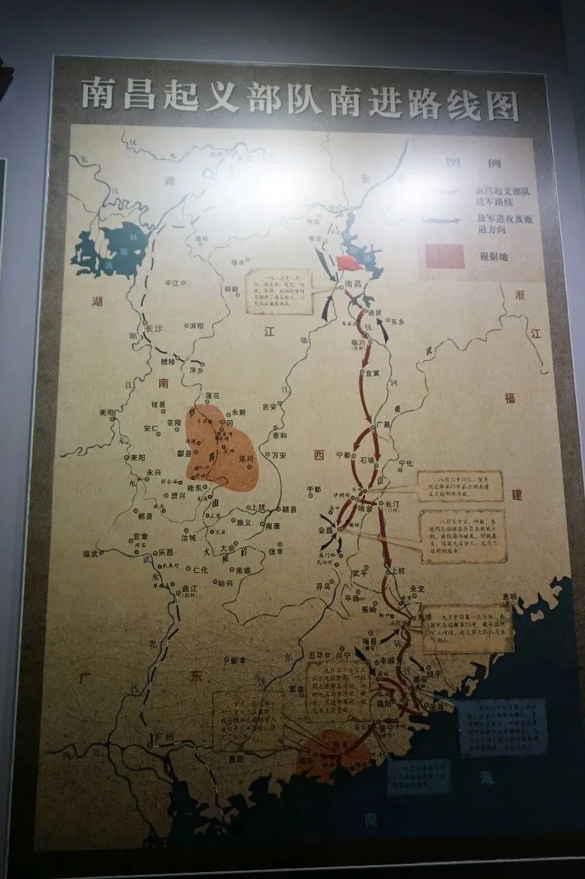 南昌是一座红色之城、革命之城,更是打响武装反抗国民党反动统治第一枪的英雄城市。 1927年,国民革命军北伐胜利进军之际,蒋介石在上海发动四一二反革命政变,随后汪精卫在武汉发动七一五反革命政变,宁汉合流后,以汪精卫、蒋介石为代表的国民党反动势力,依附大地主大资产阶级利益,残酷镇压、大肆屠杀革命群众,白色恐怖瞬间笼罩全国。 在此生死存亡的危急关头,中国共产党在南昌毅然打响了武装反抗国民党反动统治的第一枪。 1927年,中共中央决定在南昌发动武装起义。周恩来担任前敌委员会书记,牵头组织策划,联络贺龙、叶挺、朱德、刘伯承等率领革命军队向南昌集结,周密部署起义兵力与行动计划,完成各项战前准备。 1927年8月1日凌晨,在周恩来、贺龙、叶挺、朱德、刘伯承等人指挥下,起义军向南昌城内的国民党守军发起猛烈进攻,经过数小时激战,全歼守敌、占领南昌城,起义取得初步胜利。 南昌起义打响了武装反抗国民党反动统治的第一枪,标志着人民军队的诞生。 这一天,后来也正式成为了中国人民解放军的建军纪念日——八一建军节。 之后国民党调集大军反扑,起义军按计划主动撤离南昌。周恩来、叶挺、刘伯承等辗转前往香港,后回到中央继续领导革命;贺龙返回湘鄂西发动武装斗争,创建革命根据地; 朱德、陈毅率领南昌起义军余部,相继开展天心圩整顿、大庾整编、上堡整训(史称“赣南三整”),稳固了革命火种、锤炼了部队战斗力;随后率部发动湘南起义、转战湘南。 最终于1928年4月,与毛泽东领导的秋收起义部队在井冈山胜利会师,合编为工农革命军第四军。 南昌起义堪称人民军队的将帅摇篮,从起义队伍中走出了新中国首任国务院总理周恩来,以及朱德、贺龙、刘伯承、陈毅、聂荣臻、林彪、叶剑英共七位开国元帅,还有粟裕、陈赓、许光达三位大将及数十位开国将军,为中国革命培育了大批杰出军事人才。 南昌起义纪念馆内以大量实物复原起义历史场景,其中的25号房间,便是当年中共前敌委员会书记周恩来办公与休息的地方。 南昌起义中,贺龙任起义代总指挥兼第20军军长,负责全面指挥与主攻作战;叶挺任代前敌总指挥兼第11军军长,指挥主力部队攻坚歼敌;朱德任第9军副军长,负责牵制敌军、策应起义;刘伯承任参谋团参谋长,主持制定作战计划并协助指挥;叶剑英时任第四军参谋长,秘密传递敌情、暗中策应并保护起义部队。 陈赓负责总指挥部保卫工作,后任营长带兵作战;林彪任连长率部参战阻敌;粟裕任警卫班长护卫起义领导人并策应起义。 南昌八一起义纪念馆是全国著名的红色教育基地,如今游客火爆、一票难求,毕竟,谁人不崇敬革命英雄?