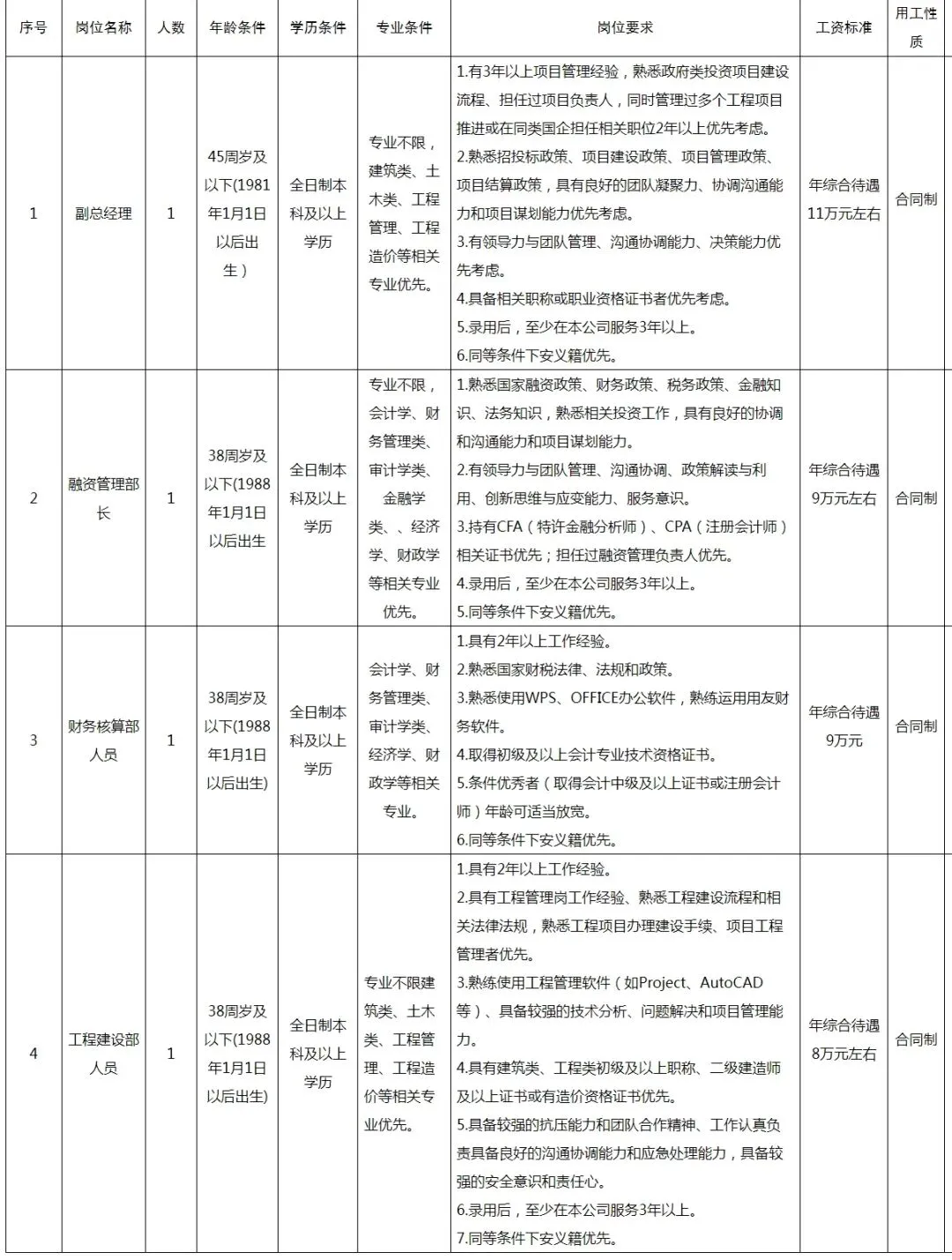 具体招聘人数及要求详见《南昌职教城教育投资发展有限公司2026年面向社会公开招聘人员岗位表》(附件1)。