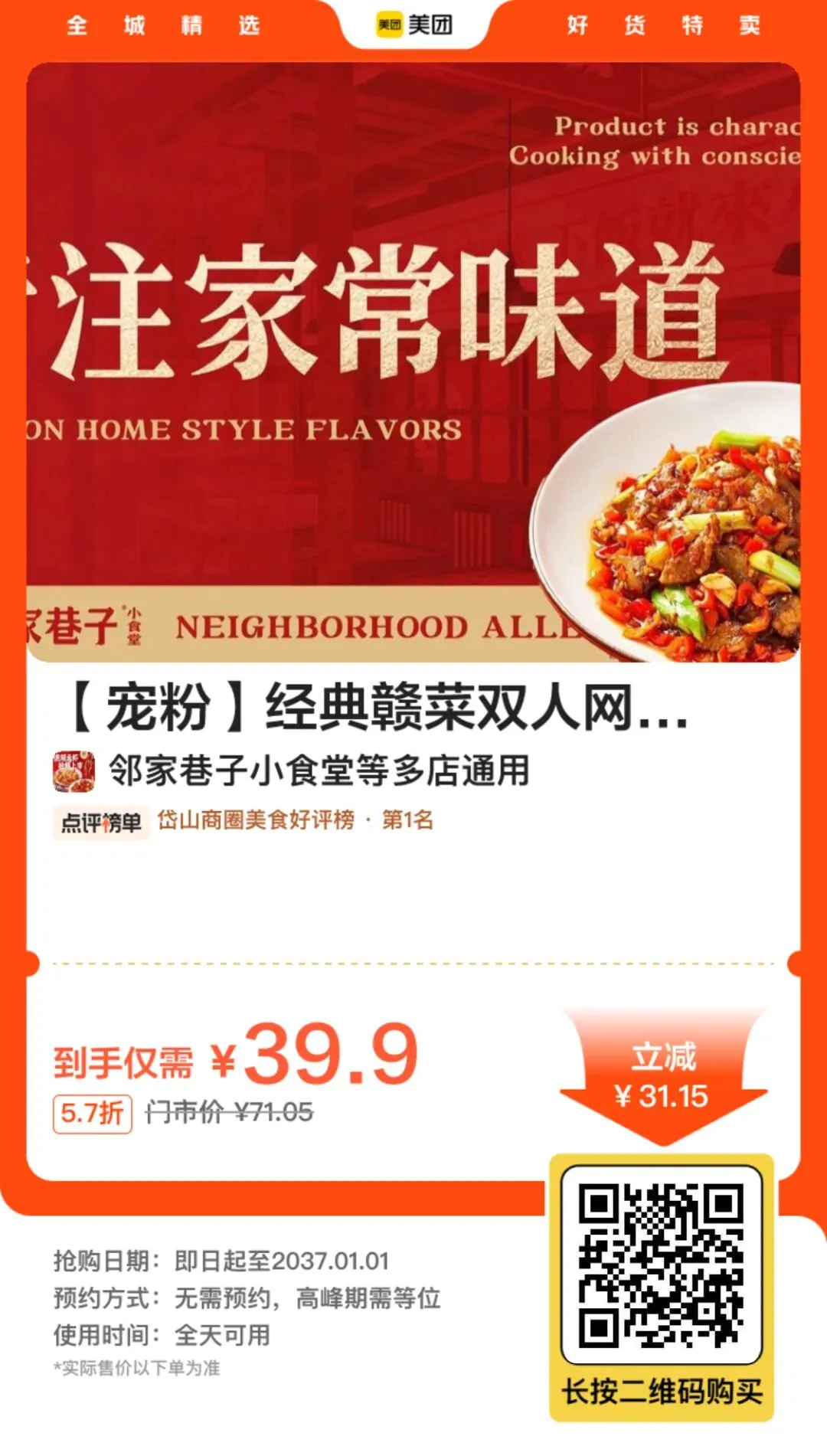 >南昌「邻家巷子小食堂」优惠券:双人餐低至39.9