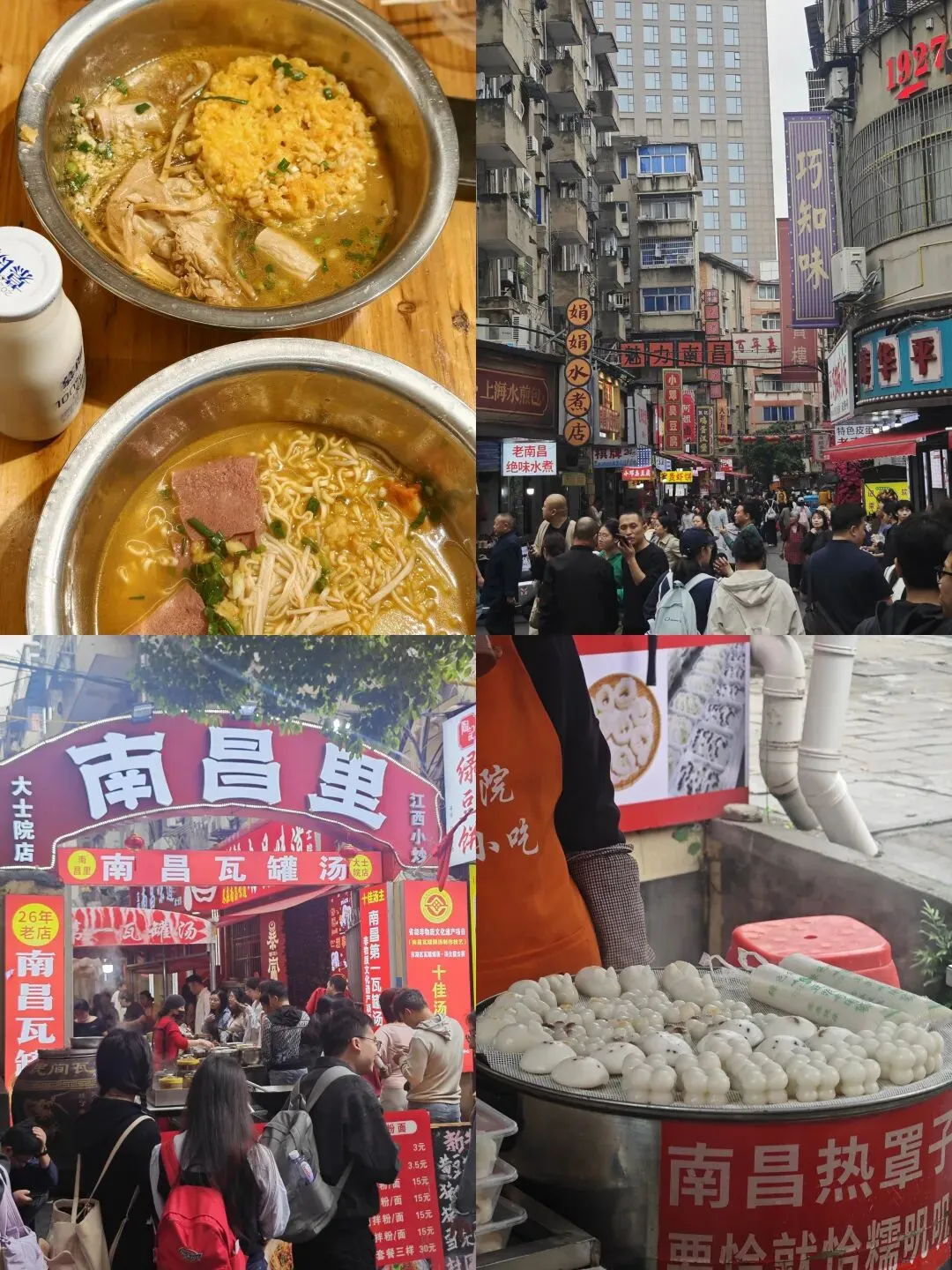 在八一公园呆了许久,热闹的很。老人们有的唱歌,有的模特队,哈哈哈,热烈得像年轻人。还有位大爷坐在两米高的树上看人唱歌,难怪儿子和我说“爸爸你看,你大爷还是你大爷”。很多人说南昌人讲话“好凶”“像是在吵架”,但深入了解后发现,这与他们性格直爽、喜欢直来直去不无关系。街边小店没有人执着地叫卖,煮水煮的阿姨们随性地聊天,这种“不刻意”,恰恰是烟火气最真实的样子。拌粉和瓦罐汤,这“一干一湿”的搭配,就是当地人日常的幸福密码。