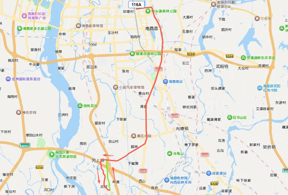 1.调整后线路走向:南龙蟠街—三清山大道—霞埠街—三百山路—赣州大道—三清山大道;