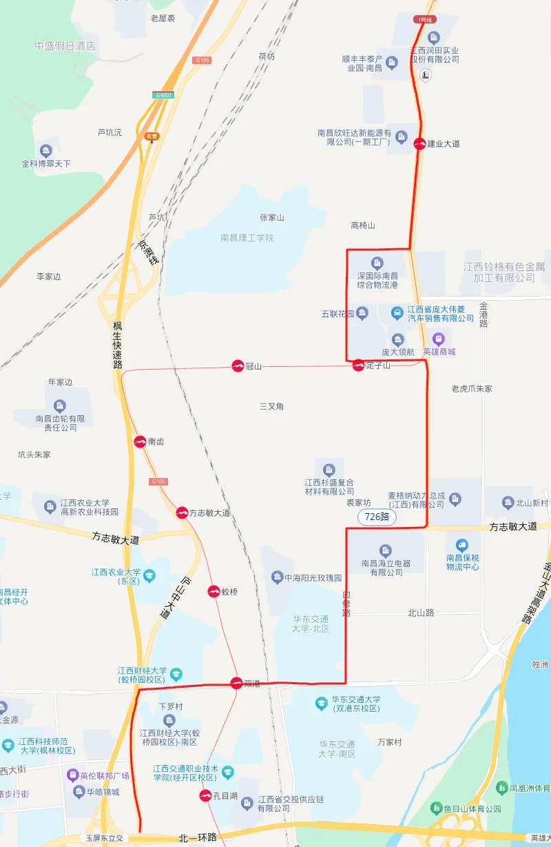 1.调整后线路走向:联博科技园—经开大道—山里熊二路—曰修路—昌北大道—经开大道—方志敏大道—曰修路—双港东大街—庐山中大道—庐山南大道玉屏东大街口;