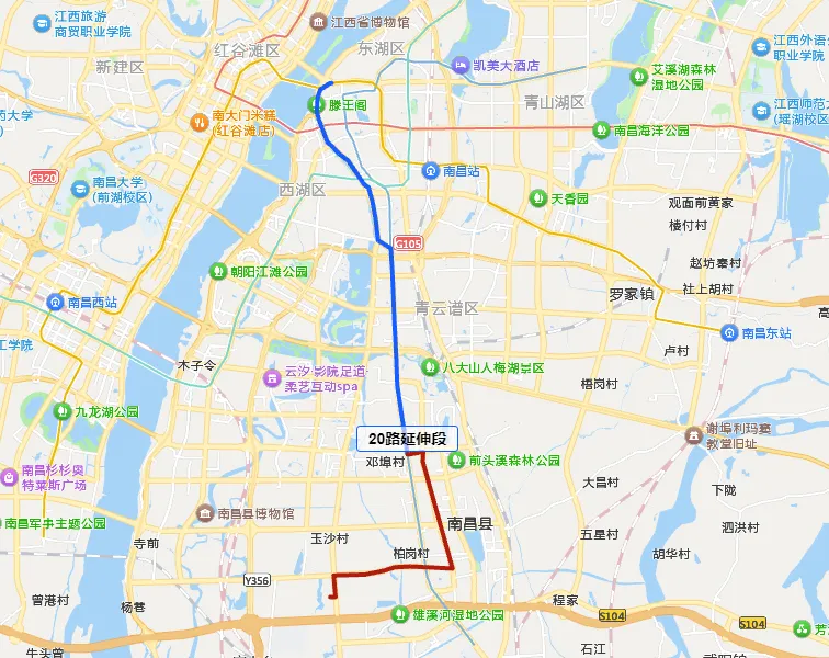 1.调整后线路走向:东岳大道—金沙二路—八月湖路—金沙大道—施尧路—抚河南路—站前西路—八一大道—阳明路;