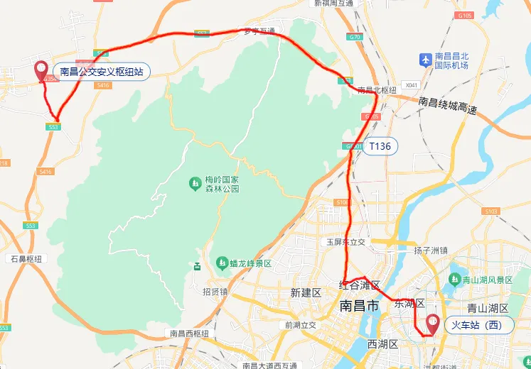 南昌公交安义枢纽站至南昌站定制线T136,
