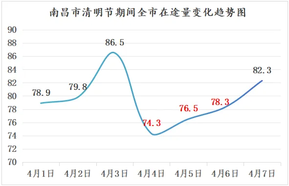 4月7日,节后的首个工作日,早高峰城区通勤与周边地市返城车流叠加,城区交通将会迎来车流高峰,预计全天在途车辆总数将超过82万辆。