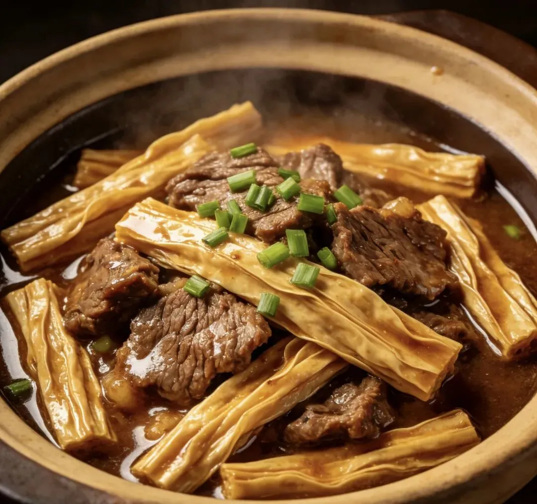 牛肉腐竹煲、胡萝卜丝炒肉