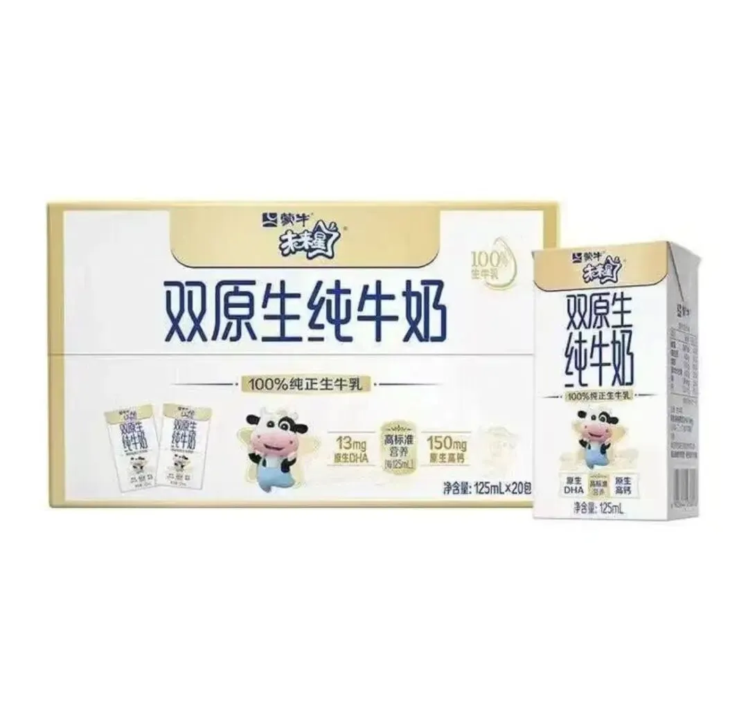 雪贝可鸡蛋蛋糕、蒙牛未来星纯牛奶