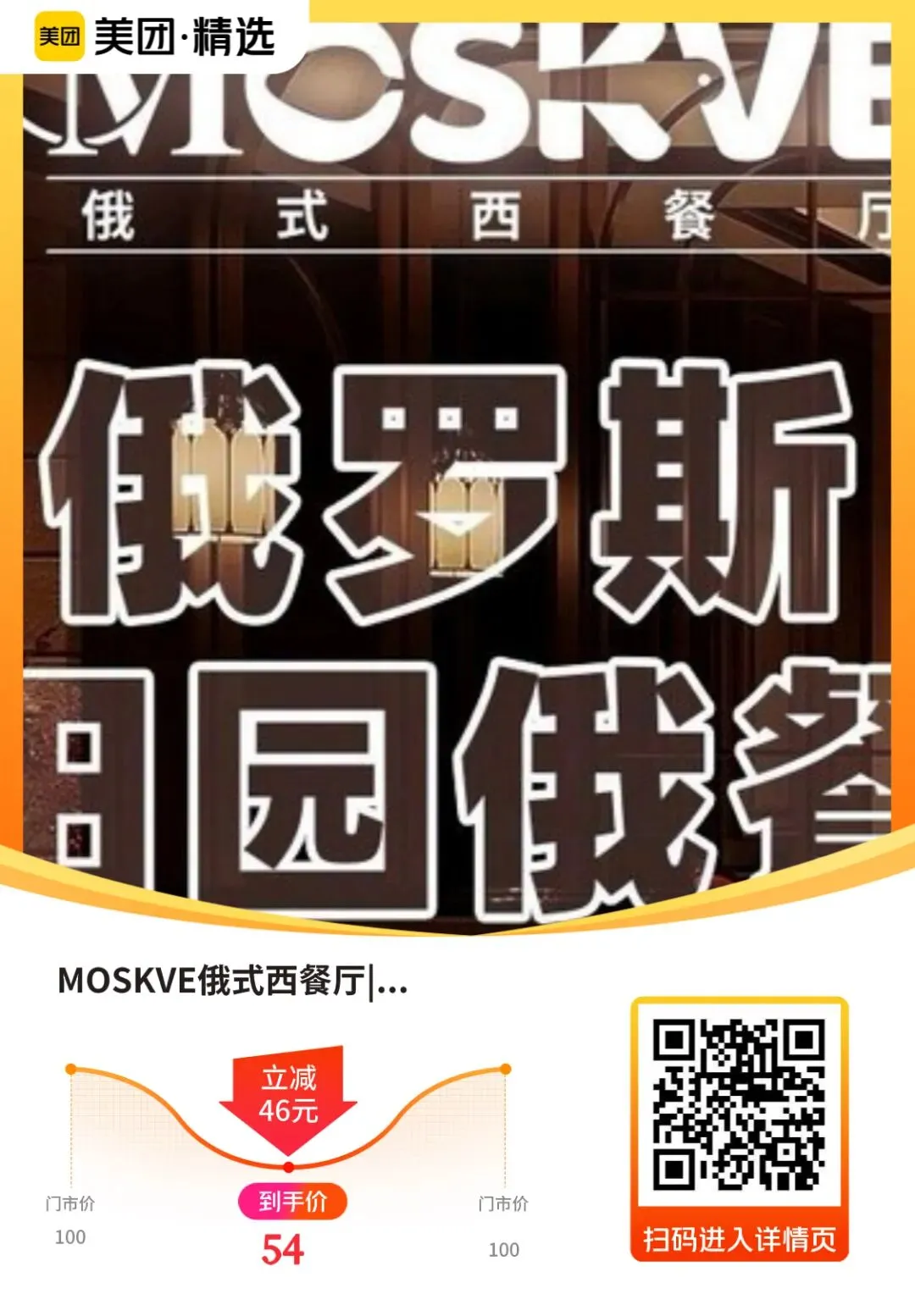 南昌「MOSKVE俄式西餐厅」优惠券:54抵100可叠加