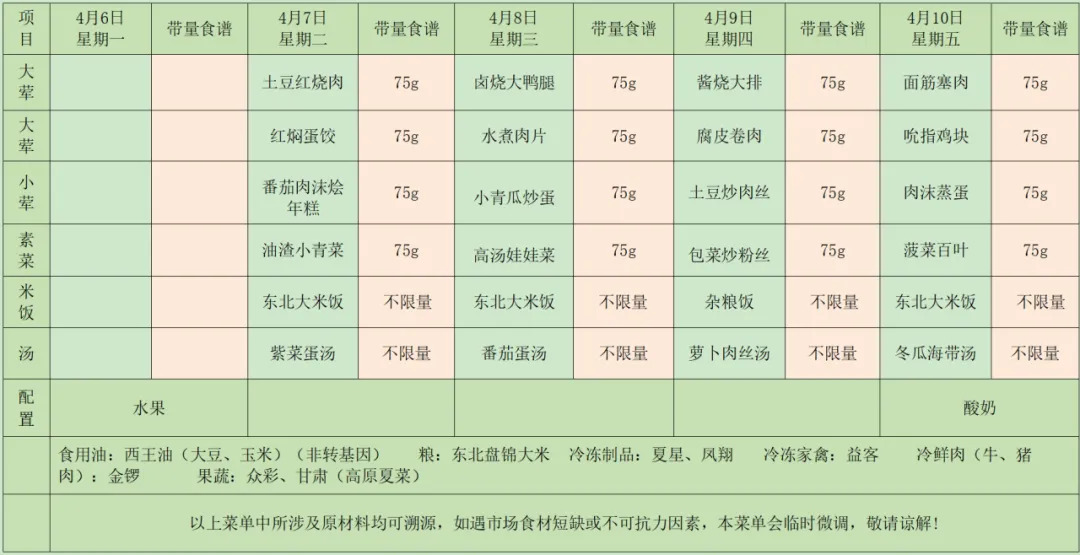 【幼儿食谱】南昌县第一幼教集团第六周食谱(2026年4月7日——2026年4月10日)