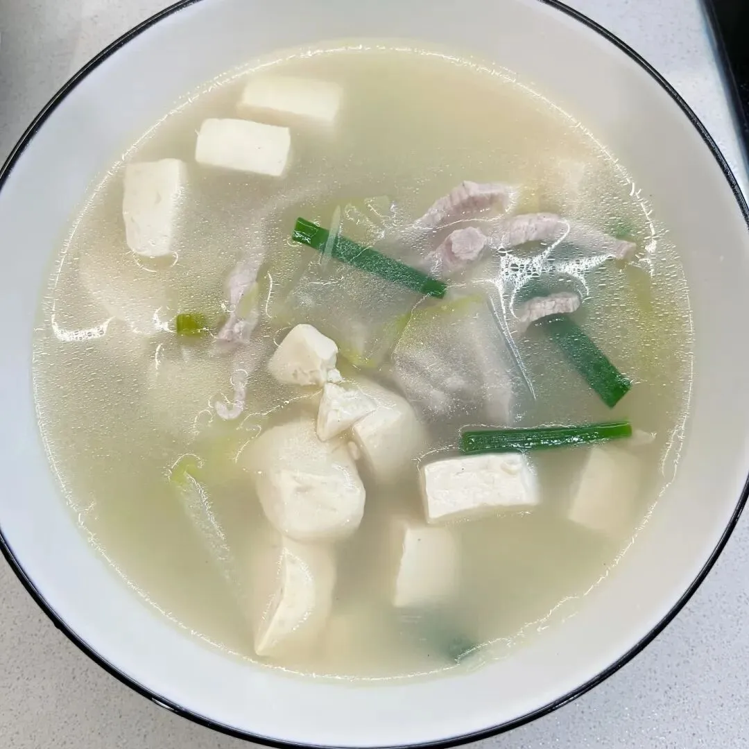 芝麻米饭、茄汁龙利鱼、芹菜山药香干炒肉、白萝卜玉米肉丸汤