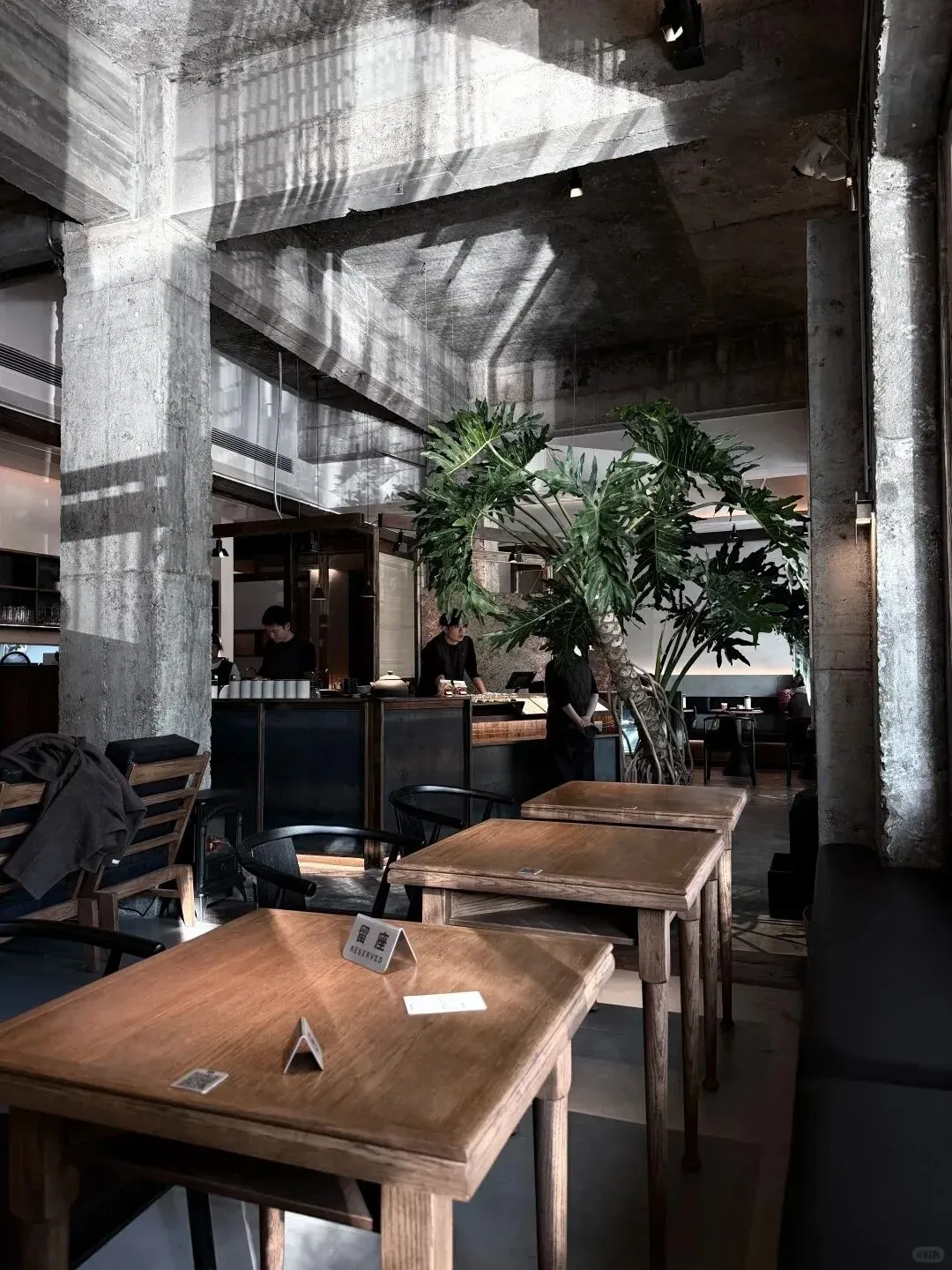 老职工楼改造出来的空间清水混凝土配上绿植和暖光工业风里透着温度