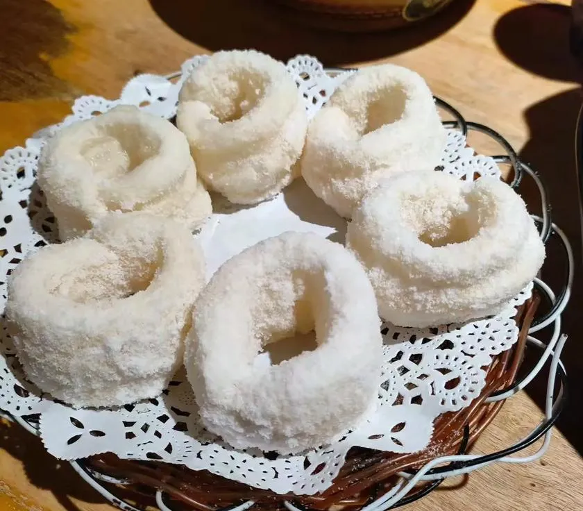 白糖糕是南昌的传统小吃,但现在做得好的越来越少,孙记这家店是老城区仅剩的几家手工白糖糕店之一。他家的白糖糕是纯手工发酵、现做现卖,糕体松软、带着米香和发酵的微酸,表面撒着白糖和芝麻,吃起来甜而不腻、软糯有嚼劲,那种口感是机器做不出来的,每天早上七点开始做,做到中午卖完就收摊,本地老人最爱买,因为这是他们小时候的味道。